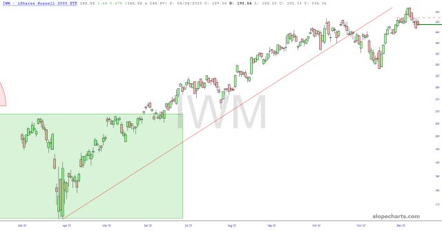 The small caps actually strike me as one of the most promising short. I shorted it earlier today (and, as usual, the dashed red line is resistance as well as my stop-loss).