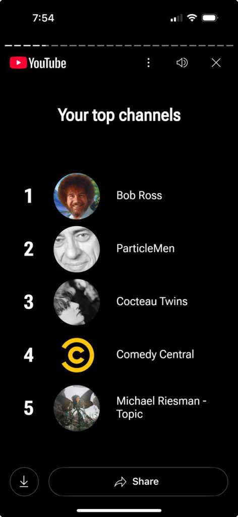 I spend as much time as possible in my home office, surrounded by screens and memories. Since the vast majority of my work is staring at charts, which only occupies a bit of my brain, I have to entertain the rest of it with music and videos. Just now, YouTube send me my 2025 wrap-up (even though there’s almost a full month left, but it’s sort of like how stores put on their Christmas displays in August). It’s quite a study:
