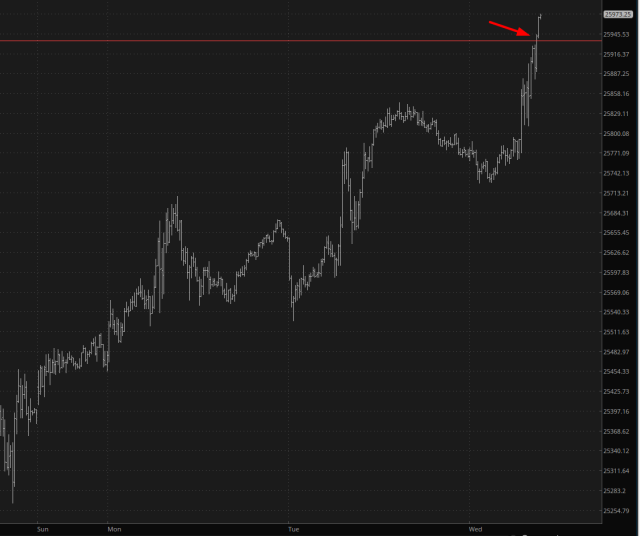For all four trading days of 2026, the NASDAQ has lurched higher. This morning, the /NQ cut above one of the resistance levels I had laid down.