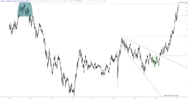It was all there in black and white. Precious was going to rock. Equities would suck. The first part has been so true that I should get a Nobel Prize in Charting (or maybe I could just take one from the actual recipient like an insipid brat). The second part is just starting to happen.