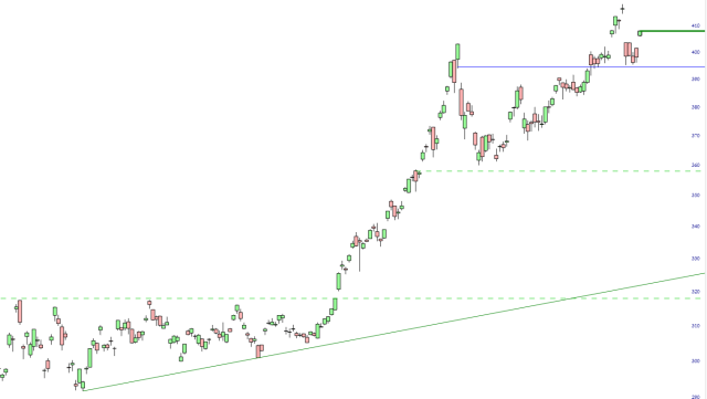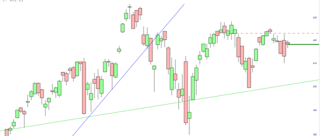Zooming in on the recent /NQ futures, a recent and mild downtrend of lower lows and lower highs is still intact.