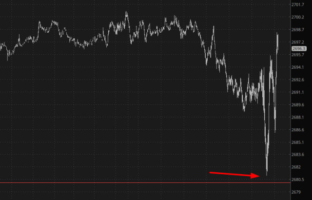 When /RTY dipped earlier this morning, it stopped short of piercing that line. It appears to represent support for the moment.