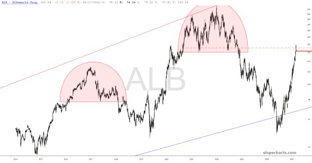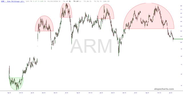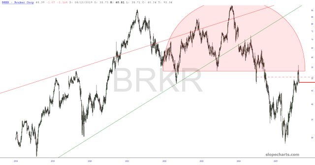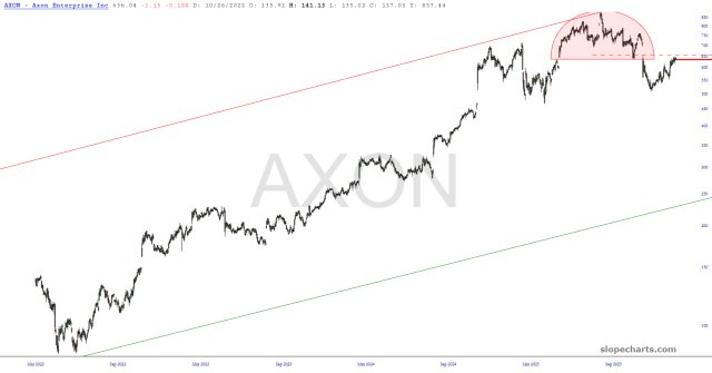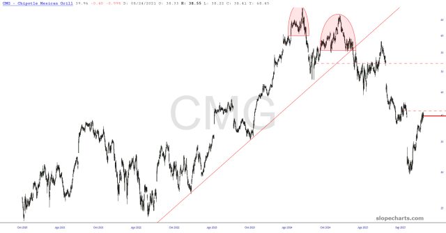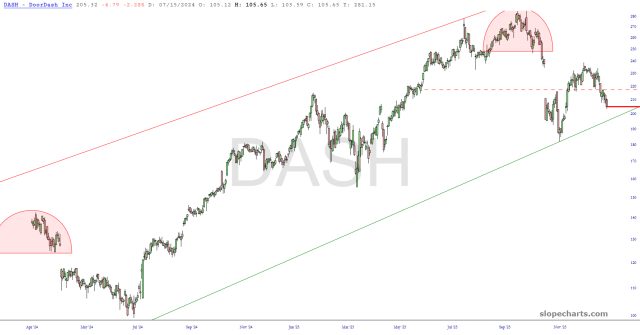 Preface to all three parts: I have thirty equity symbols in my Bear Pen watch list. I am already short twenty-two of them. Below are ten charts, zoomed in to the portion I feel is most germane. I have watermarked each chart with its ticker symbol, and just to add a little something special this weekend, I’ve given a letter grade to each chart to provide, in my estimation, the overall quality of the chart as a short position.