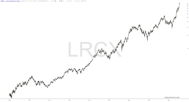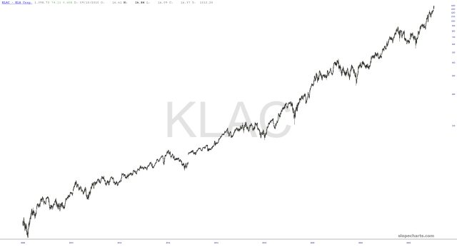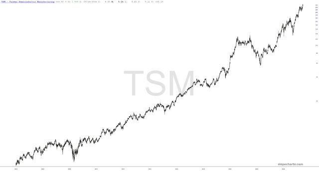 Over the past couple of decades, semiconductors have been the superstar of the equity world. I went through the twenty-five biggest components of the SMH (ETF for semiconductors) and plucked out the ones which seemed to be the most jaw-droppingly consistent in their performance (you’ll notice NVDA isn’t here, which has been pretty raspy for a half year now).