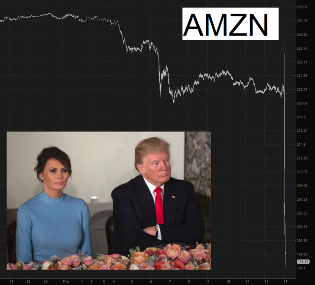 I have no strong opinion (or position) in AMZN but it would be awesome karma if they got nuked after the close today if for no other reason than releasing that Melania movie.