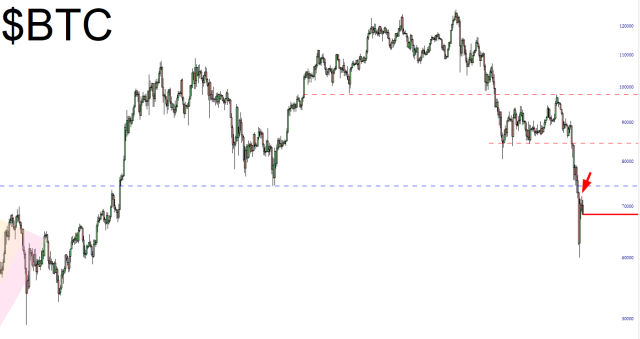 Instead, I stated it would bounce to about $73,000 and then reverse. Well, the futures of /BTC opened Sunday with /BTC spiking to 72,760 instantly, and they’ve been slowly bleeding ever since. I’ll refrain from too many I-told-ya-so’s until it cracks $60,000 and commences its death spiral. Weakness in crypto will be of aid to the two equity bears left on the planet (which is me and one other person reading this).