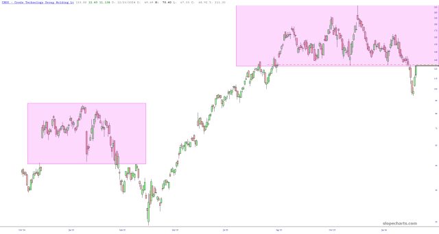 One of the better performers lately is Arthur J. Gallagher, which is an insurance company with a massive topping pattern.