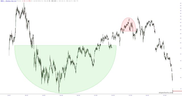 Earnings season is quickly winding down, but one interesting item coming out after the close is Robinhood (HOOD). I’d love to short this, but not at these prices. My dream scenario would be a rally to that price gap. Until we see what happens, I am not touching it. (Sadly, if it just plain falls, it’ll be too late!)