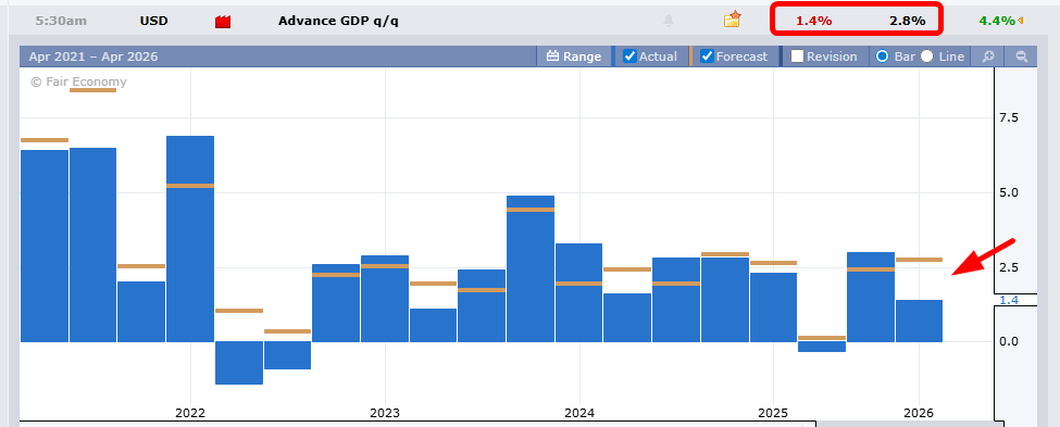 The GDP was expected to come in at 2.8%. Instead, it is HALF that value. I guess the tariffs continue to work their magic.