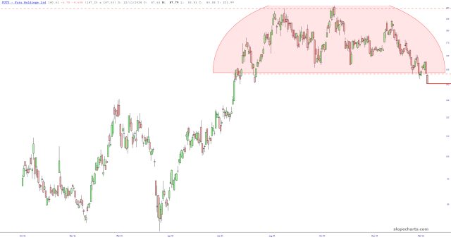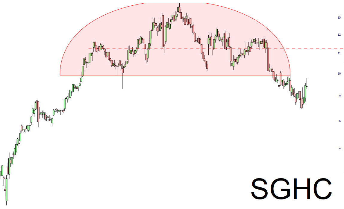 The market is replete with very clean patterns these days. One of them, until just hours ago, was that of Super Group, shown below without today’s price bar.