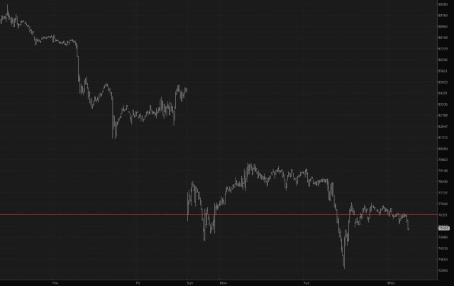 Finally, keep an eye on the domicile of neck-bearded chicken-boner incels all around the world, Bitcoin. Its failure at $75,000 is an important psychological break, and an acceleration of the selling will help equity bears as it dawns on people how stupidly overvalued everything on the planet is.