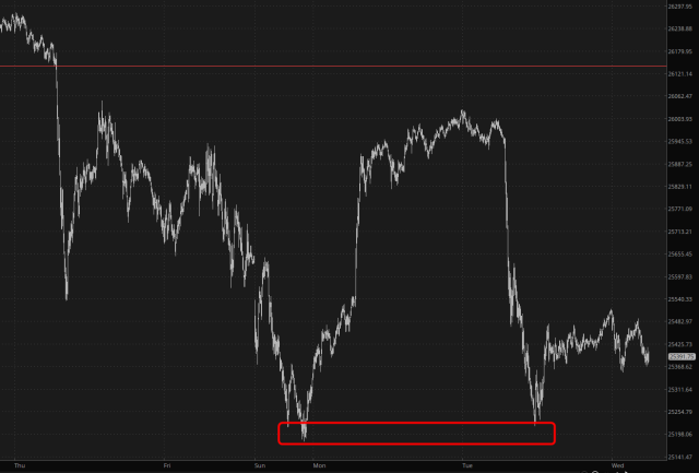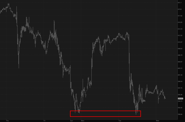 In a similar fashion, the broader /NQ tried to break Sunday’s low but couldn’t quite do it. I think today might just be the day.