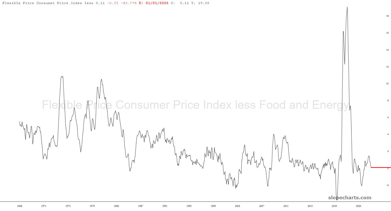 The CPI (less the luxury items of food and energy) nicely shows the mega-spike that took place when trillions were hurled into the economy for Covid “relief”.