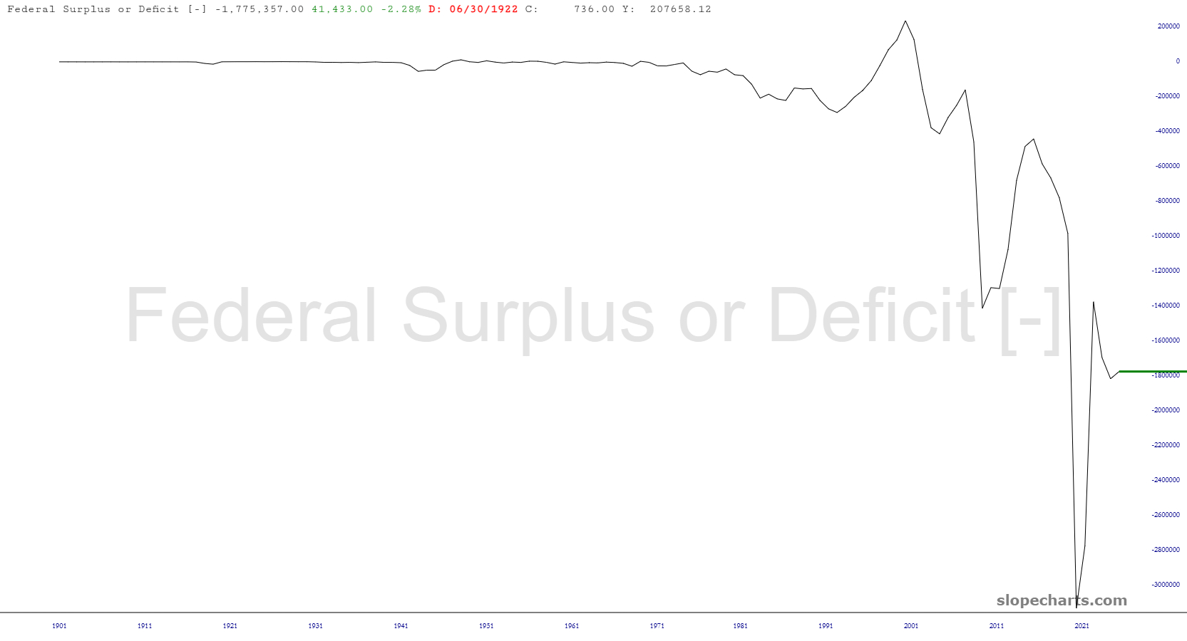 The federal government ran a quite modest deficit for many, many decades until around 1980, after which we have convulsed ourselves into irrecoverable bankruptcy.
