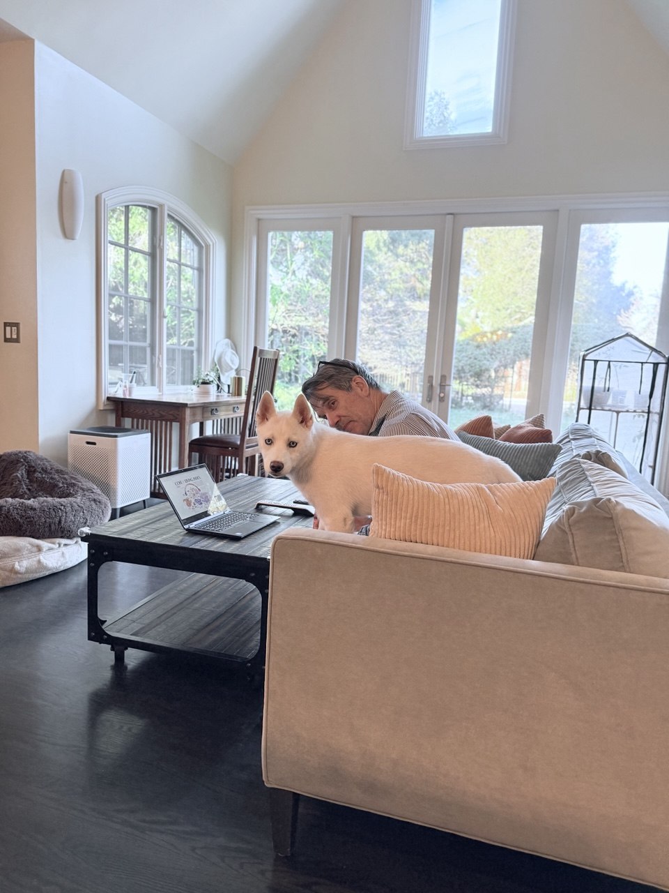 In general, it was a tremendous day. I’m going to go through a bunch more charts now. Here’s a live Tim-cam of me getting ready for my evening analysis, accompanied by the intrepid Mishka.