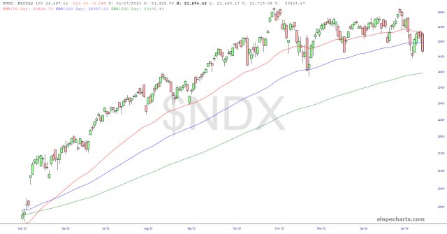 The situation is even better for the bears in tech-land. Indexes are at the same prices they were in freakin’ September, and you can plainly see how this market is curving its way to what could be an impressive top. I would also note this is the first close below the 100-day EMA for ten months.