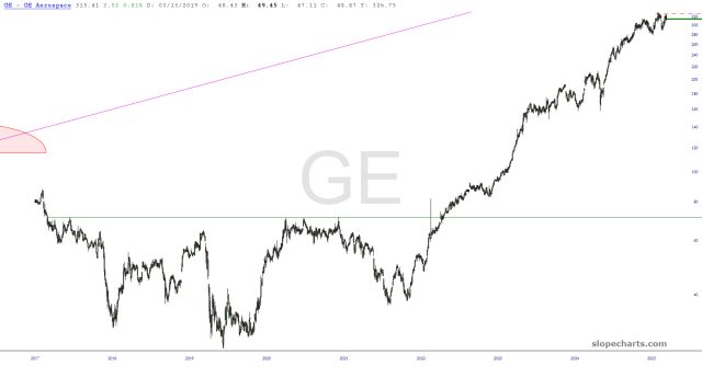 The same largely holds true for GE Aviation, although at least it has banged out a lower high.