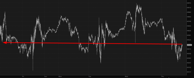 Oh. My. Lord. This market is sooooooo boring right now. This isn’t just a grumpy opinion. Check out the net result of an entire WEEK of market activity on the /ES: