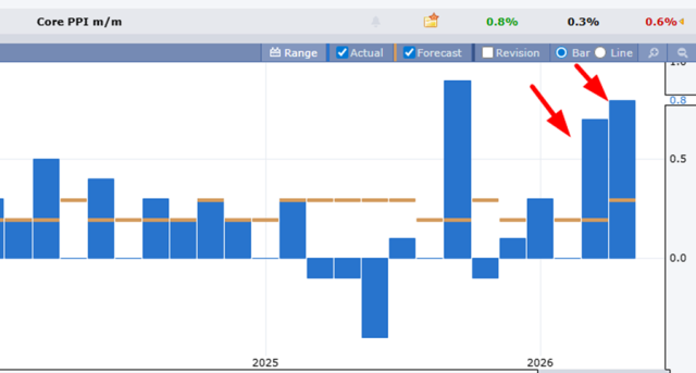 This morning appears quite promising, as all equity futures are ready and the latest inflation data is NOT what the bulls want to see. Month over month PPI is, for the second month, WAY over expectations: