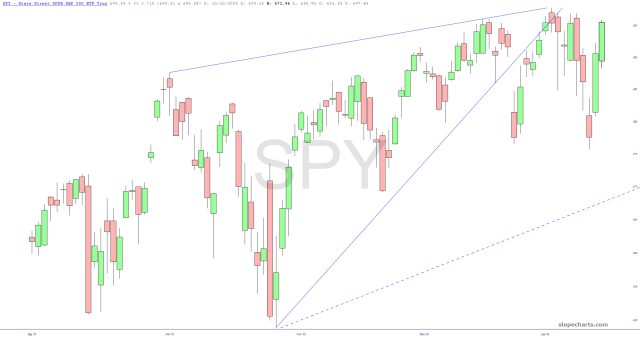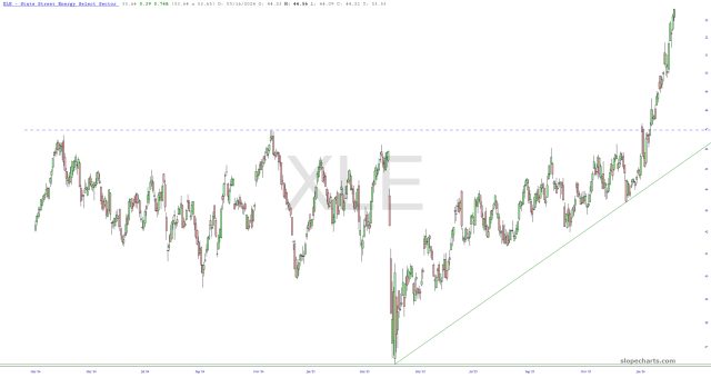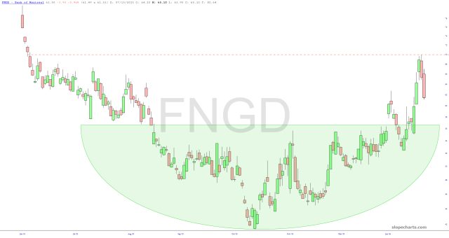 Now that my stew is, well, stewing, I’d like to share a few thoughts about seven ETFs during this very green Monday. I have placed these remarks in the caption area of the charts below, and the symbols are watermarked.