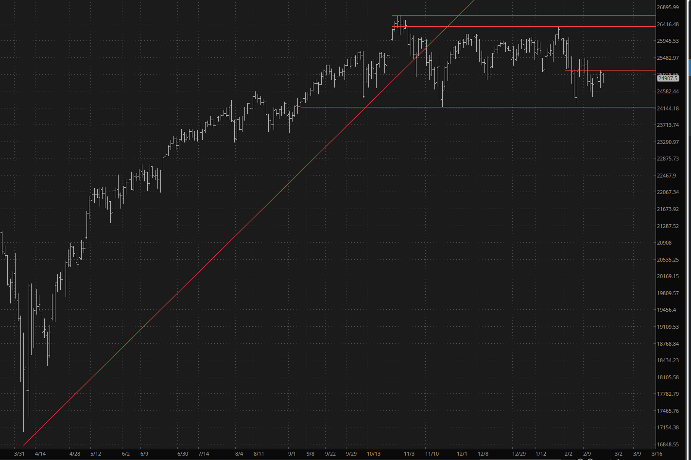 Speaking of grinding, NVDA has been spinning in circles and going nowhere since literally last July. This is a big week for Nvidia (and the market) since they announce earnings results shortly after the close on Wednesday. This is probably the seminal event of the week.