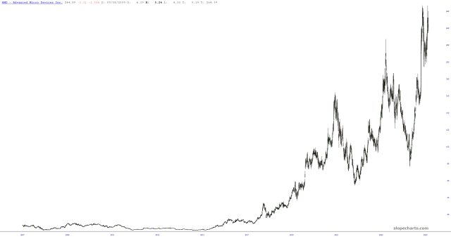 The big event this afternoon is going to be Advanced Micro Devices (AMD), in which I have a short position. Here’s hoping it, umm, slips.