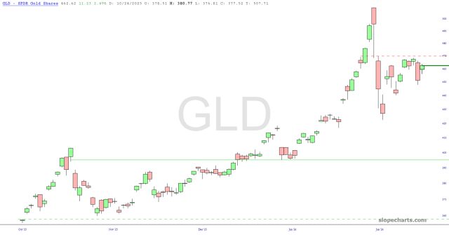 The largest, oldest, and most important ETF, the SPYders, is at the bottom of a range that’s been in place a few months. It’s going to take some kind of important catalyst to provide the power to bunch prices below the trendline as opposed to drifting higher as it usually goes. For this reason, I am medium-aggressively positioned as we burn through this three-day weekend.