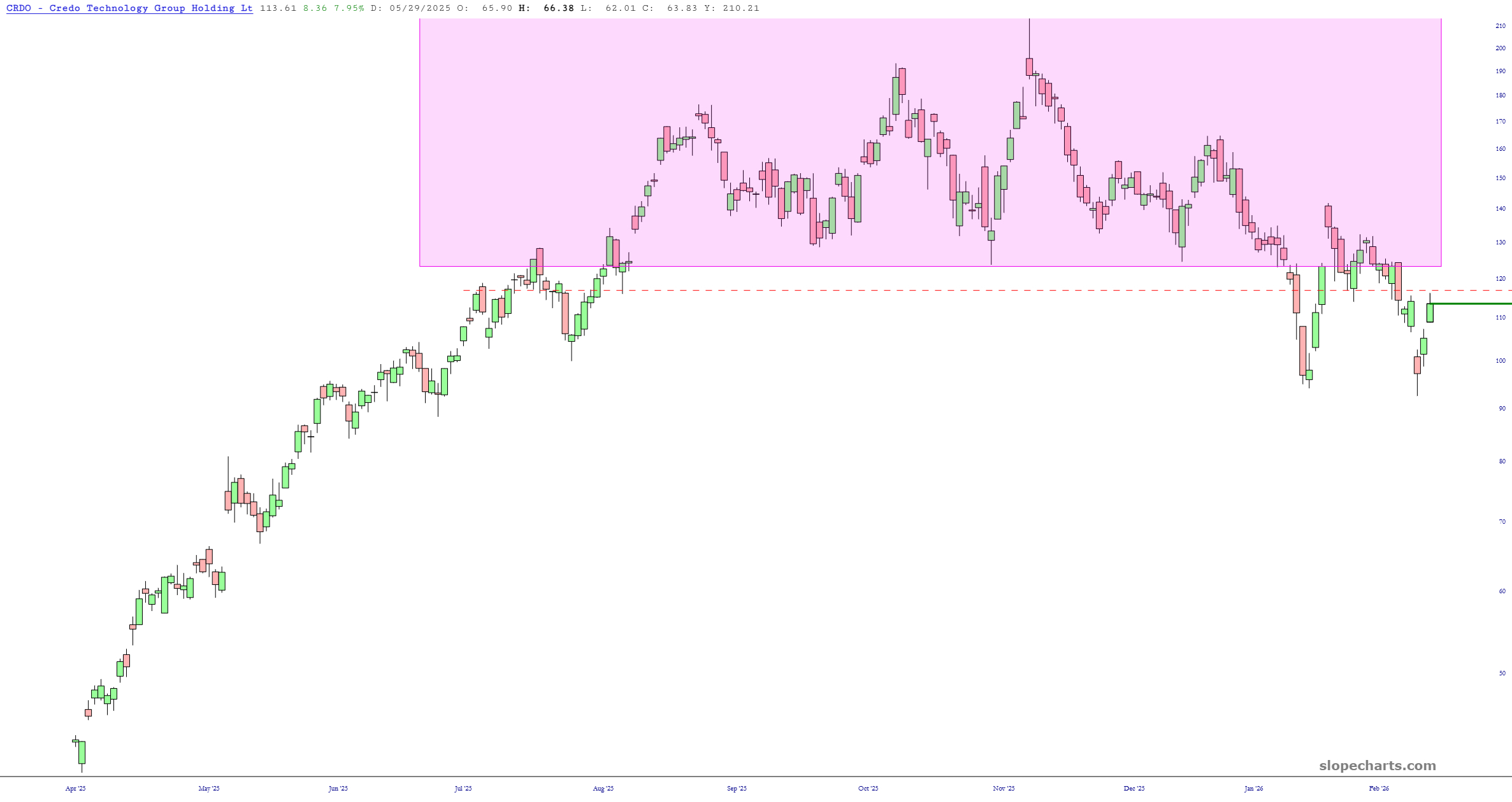 I wrote yesterday about Credo (CRDO). I had June puts on it with good profits. A couple of days ago, I sold a third of the position off to trim the risk (it had become too fat). This morning, CRDO is soaring. Am I upset? Nope! On the contrary, I have re-established my full position. I think this one is going to be a long-term winner.