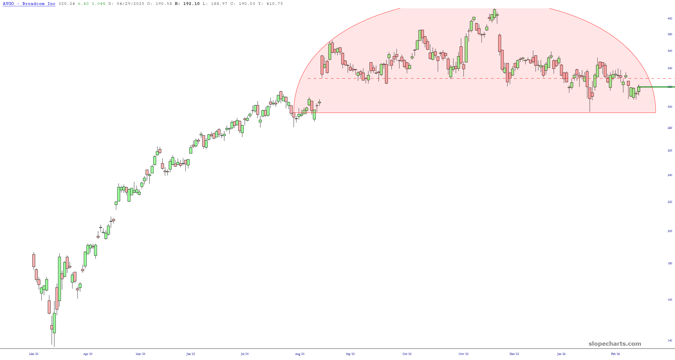 AVGO After Hours By Tim Knight - 4 hours ago (04, Mar 2026 12:00:00 PM) Broadcom will be the one to watch today after the close (I am short with a stop-loss at 330): « Prior Next » https://slopeofhope.com/2026/03/avgo-after-hours.html AVGO After Hours In order to comment on this blog, you must have JavaScript installed and enabled. « Prior Next »