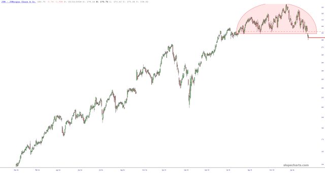 Financials Fail By Tim Knight - 1 month ago (09, Mar 2026 11:00:00 AM) The ETF representing the financial stocks has completed a clean top with a well-defined gap at 50.91: Here are a couple of financials I’m already short and whose tops look even better: JPM MA « Prior Next » https://slopeofhope.com/2026/03/financials-fail.html Financials Fail In order to comment on this blog, you must have JavaScript installed and enabled. « Prior Next »