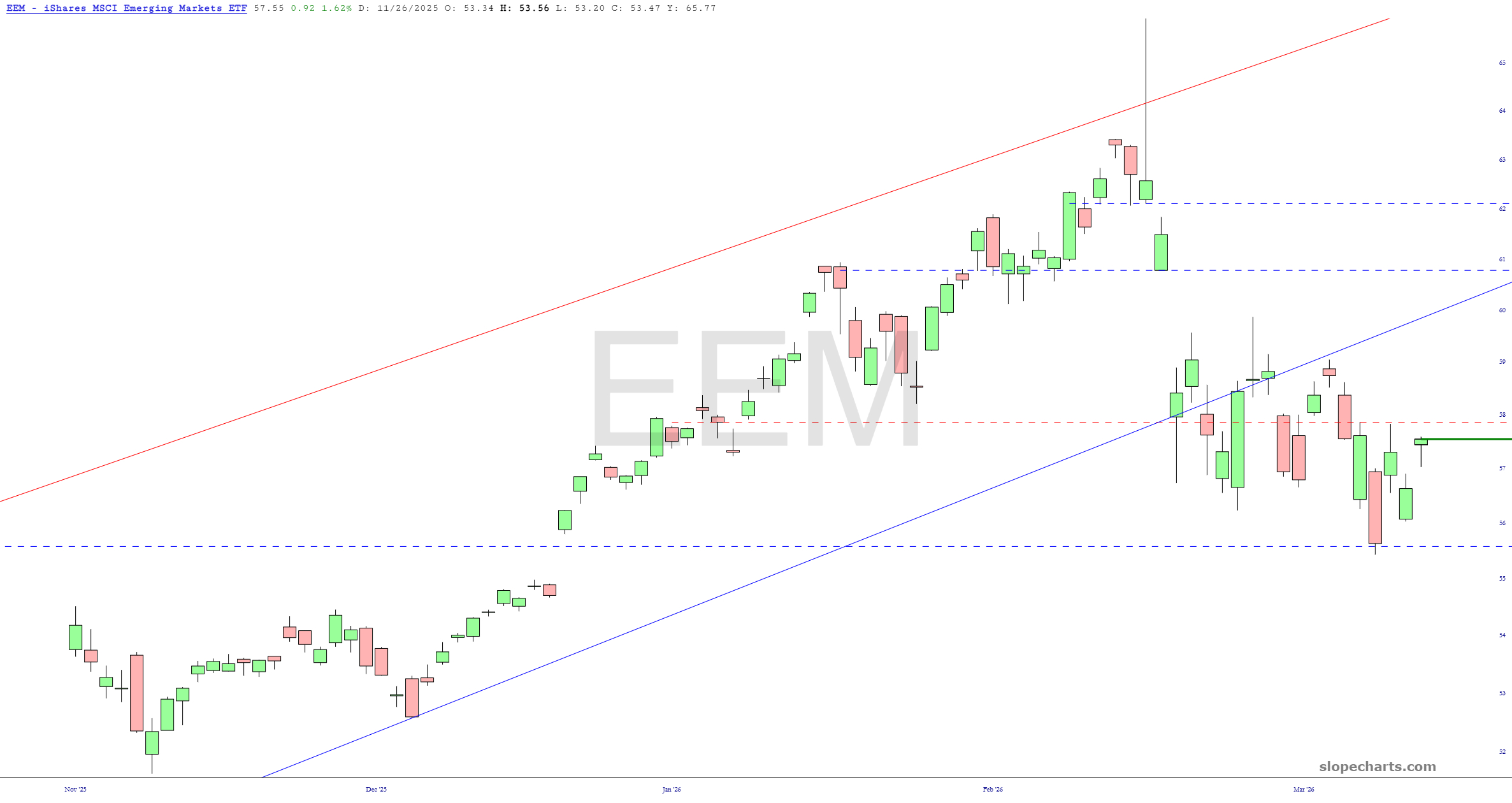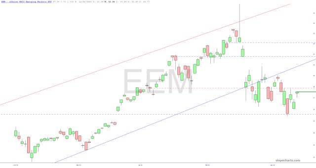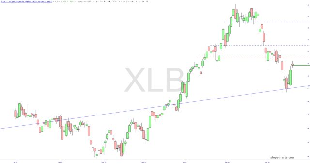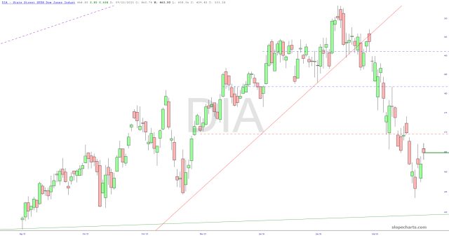 My exposure has increase from 36 positions to 43, and my commitment level has bumped from 103% to 169%. Take careful note of the dashed red lines of the major ETFs below, as they represent important levels of resistance.