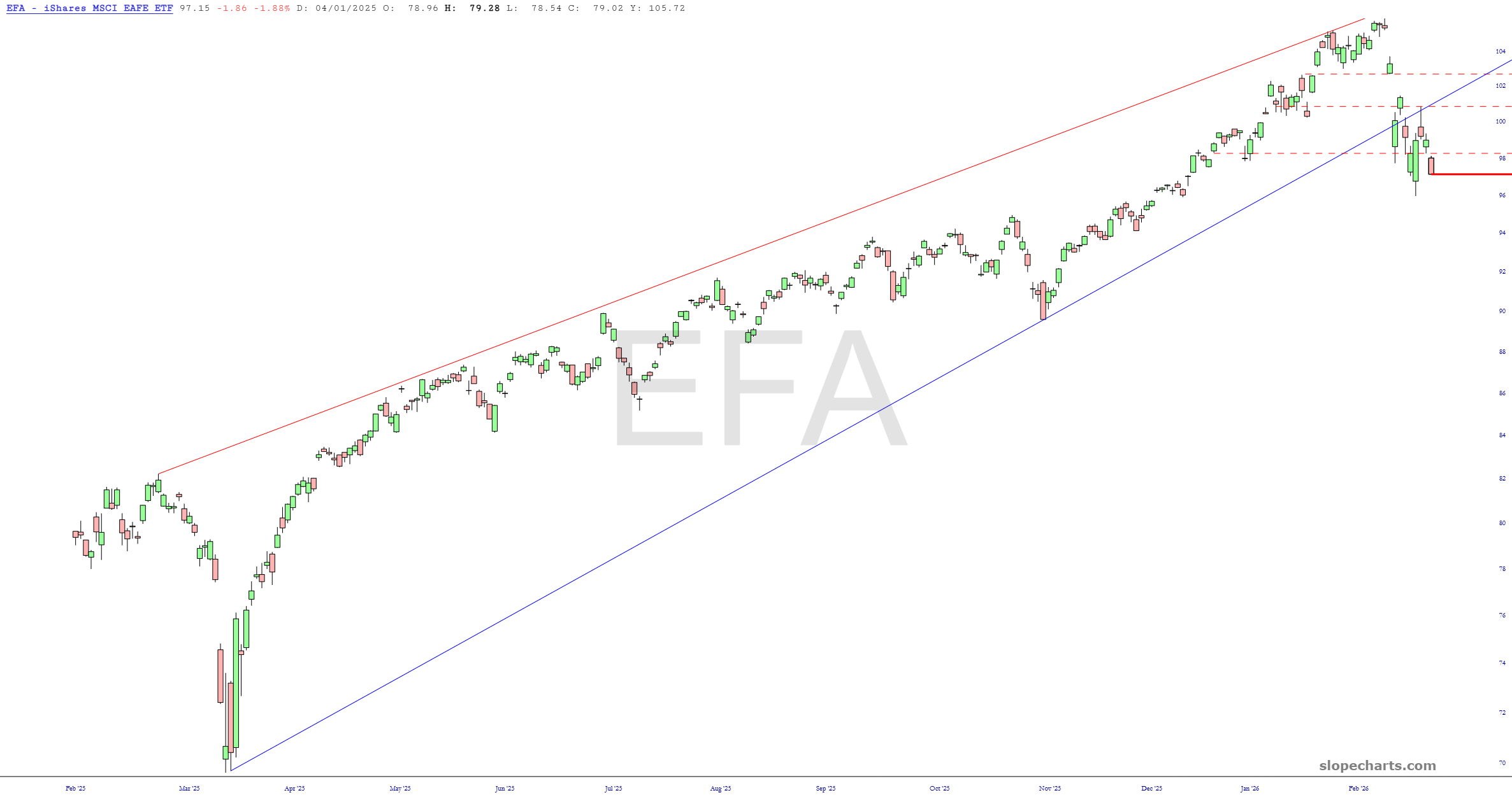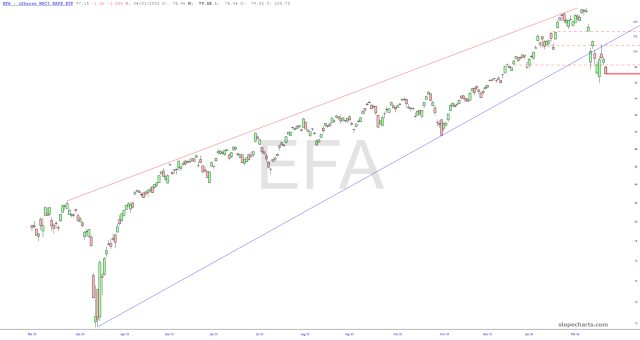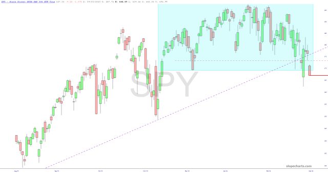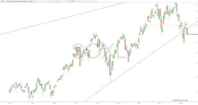 The market continues to erode, blessed as we are by the most corrupt, inept, and idiotic government of the past ten thousand years. For myself, I continue to tend to my 50 (!!!!!!!!!) bearish positions by making appropriate chart-based stops and sizing adjustments. The beautiful thing about today is the new gaps that have been formed between yesterday’s lows and today’s highs.