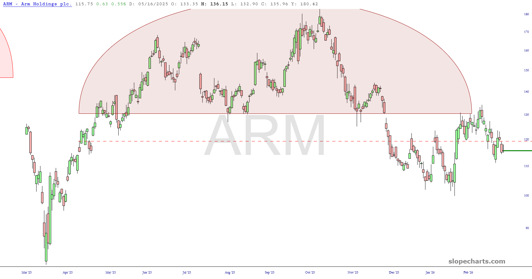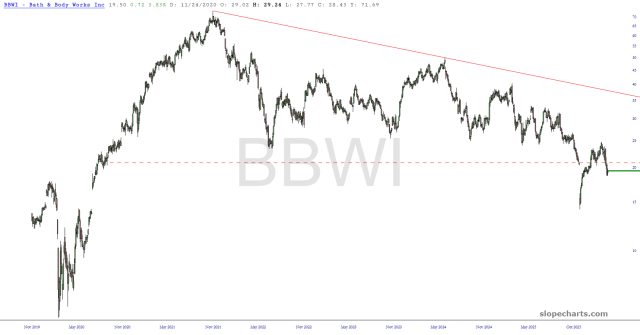 I have two portfolios which consist of nothing but short positions. Below are the contents of one of them, and there are eighteen positions in it. I have zoomed in on the germane portions of the chart, and everyone can see the first six of them. The remaining twelve are visible only to Slope’s paying members of every level.