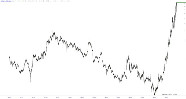 I am showing AXTI below simply because it boggles the mind: it has moved up thousands of percent in a matter of months, and even with all the mayhem happening around us, there isn’t a downtick in sight. This is the kind of thing I know will ultimately reverse, but I’m not going within 300 yards of it.