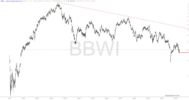 With the /ES up triple digits and the /NQ up hundreds of points, there is precious little red on my screen today. There are only a couple of exceptions of stocks that are actually dipping in the midst of this rally, God bless ’em………