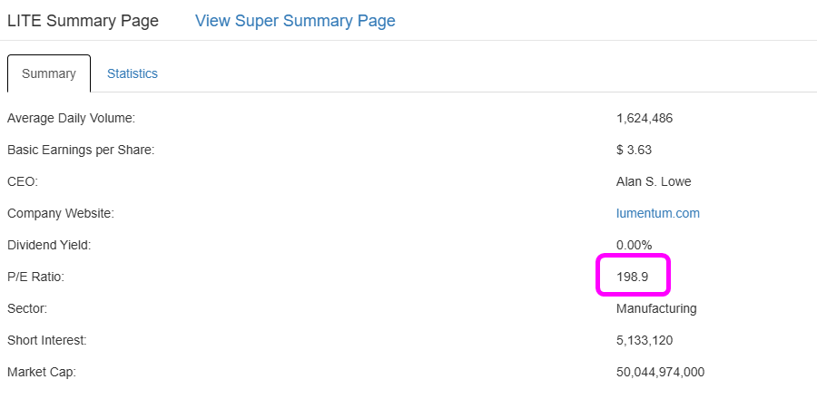 Turn Out the Lite! By Tim Knight - 2 hours ago (02, Mar 2026 4:30:00 PM) Lumentum (LITE), like Corning (GLW), seems to be a stock that has never met a downtick. It just the past ten months, it is up something like 1200%. Why? What on Earth?!? One thing’s for sure: it isn’t because it’s a bargain. Sheesh. « Prior Next » https://slopeofhope.com/2026/03/turn-out-the-lite.html Turn Out the Lite! In order to comment on this blog, you must have JavaScript installed and enabled. « Prior Next »