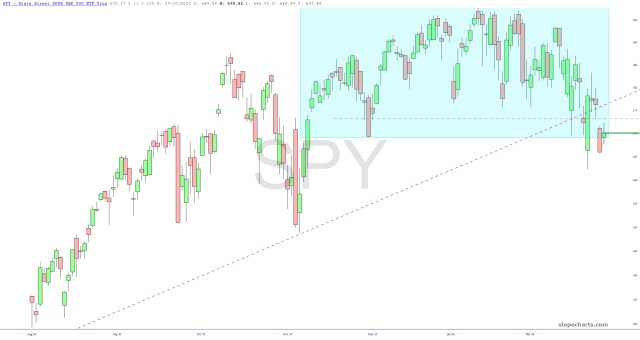 The simple fact is that this IS a bear market, and every single ETF I look at is screaming the same: so long as the gap, marked with a dashed red line, isn’t violated, you are golden.