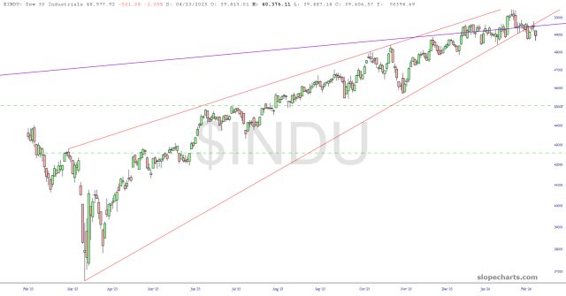 The Dow 30 Industrials has cracked its ten-month old trendline for the first time.