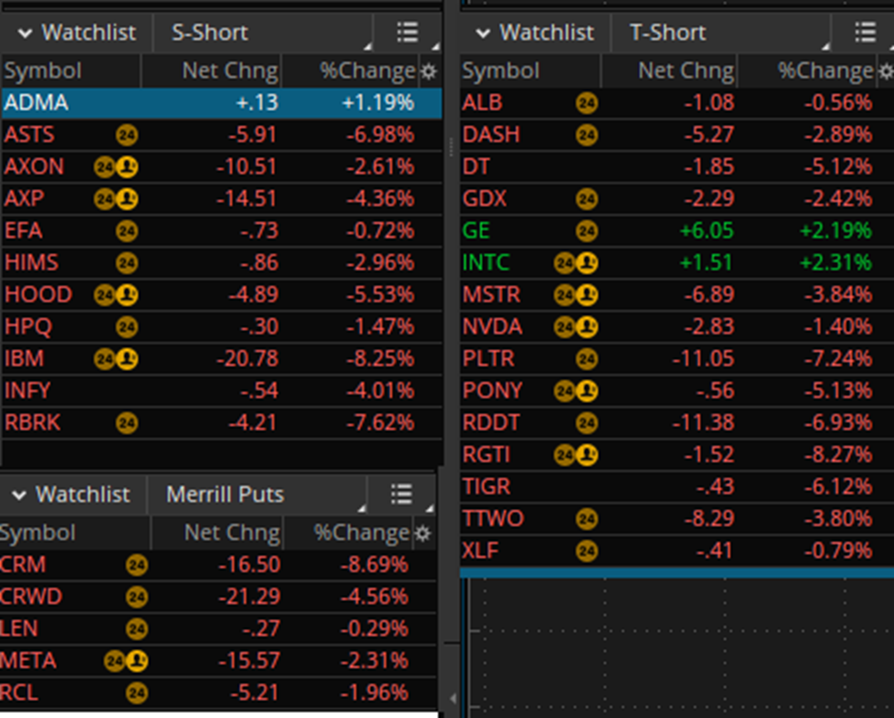 The market collapsed all of 0.39% today, but still, my shorts did terrific. My one stinker was Intel, which I shorted today (small position) but covered at a loss after the close, since they are raging higher.