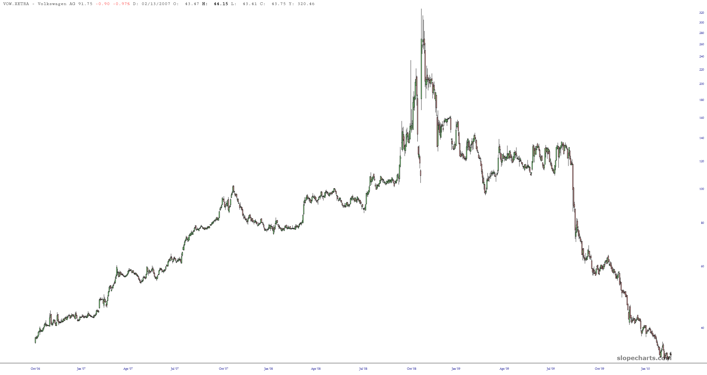 As for Volkswagen, you may not know this, but Platinum folks have access to international charts in SlopeCharts as well. Here’s the XETRA chart of Volkswagen, zoomed in on the 2008 saga.