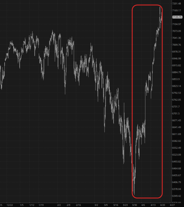 It’s been a rough six days. I’m not just talking about the market. I’m also referencing a technical issue I’ve been grappling with which has involved my most intense problem-solving skills. Between that and this insane market, I’m ready to grab my knees, sit in a corner, and rock back and forth.