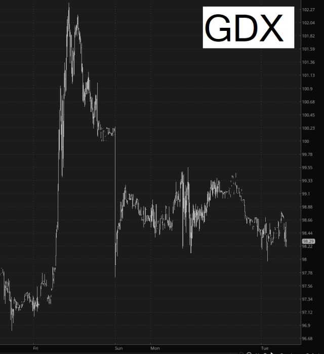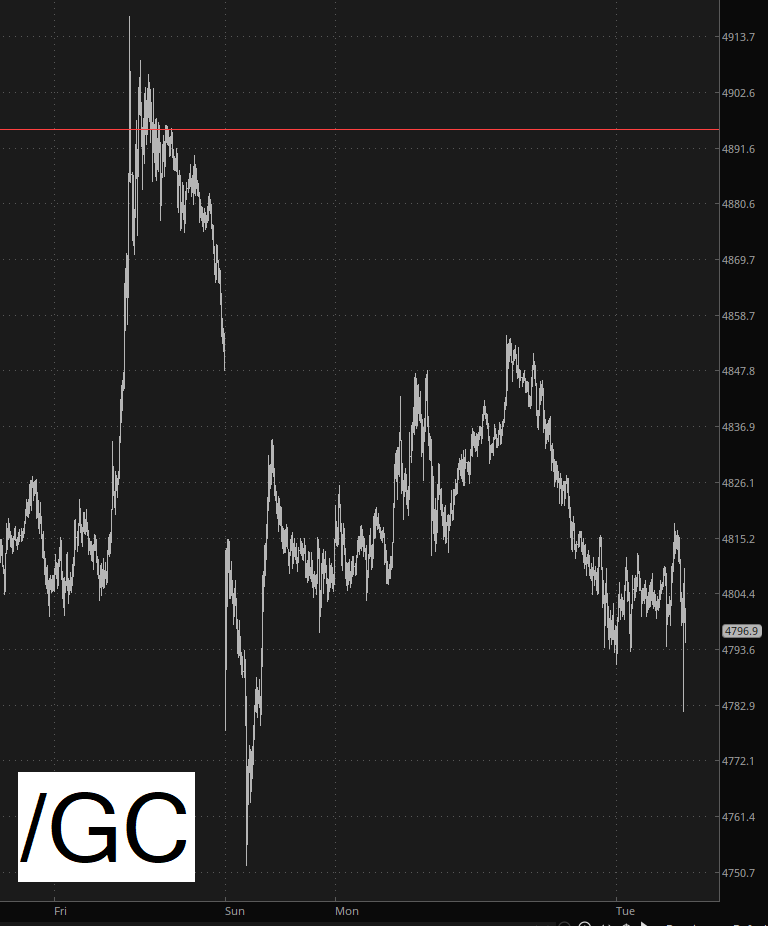 My bearish disposition toward gold is working out so far. As I’m typing this, all the major equities (NONE of which I am short) are green, yet gold is off about forty bucks.