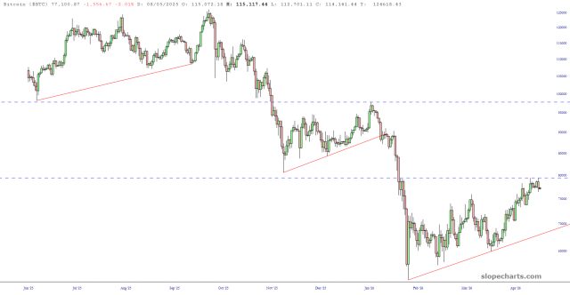 Of course, I need to mention Bitcoin, since this is my North Star in this entire endeavor. The analog is holding up beautifully, although it sure gave me a scare Sunday night. We need to see this continue to weak, and for that weakening to accelerate. Get that, and everything else will fall into place.
