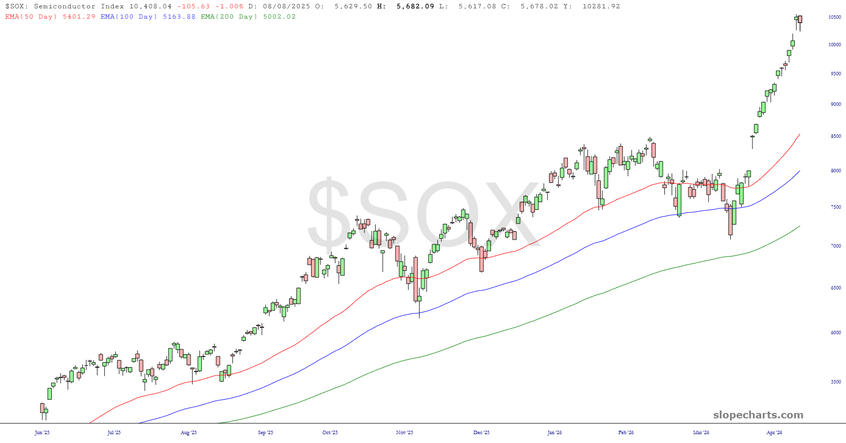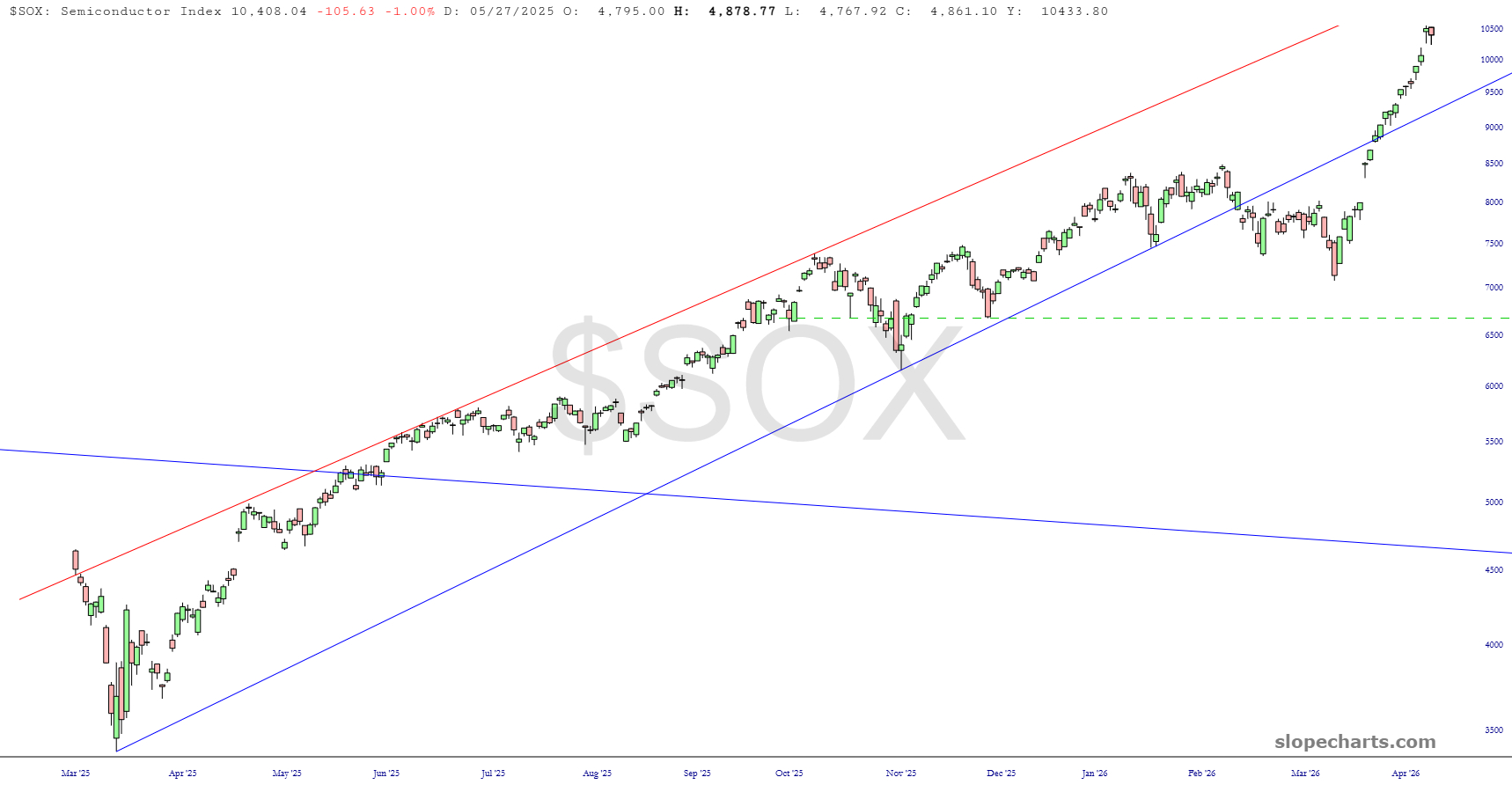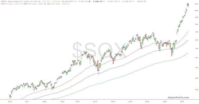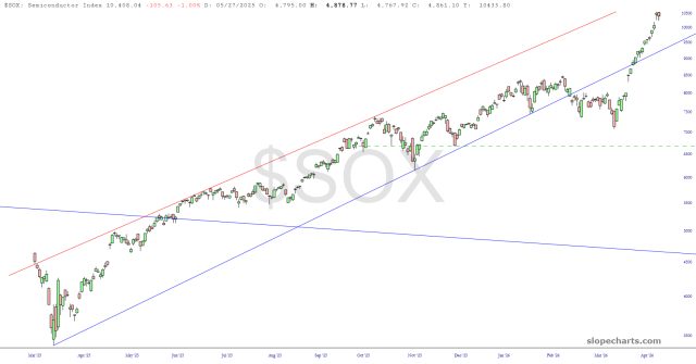 Weirdly, NVDA’s huge day and massive breakout wasn’t enough to push the semiconductor index any higher, even though NVDA is (obviously) its largest component by far.