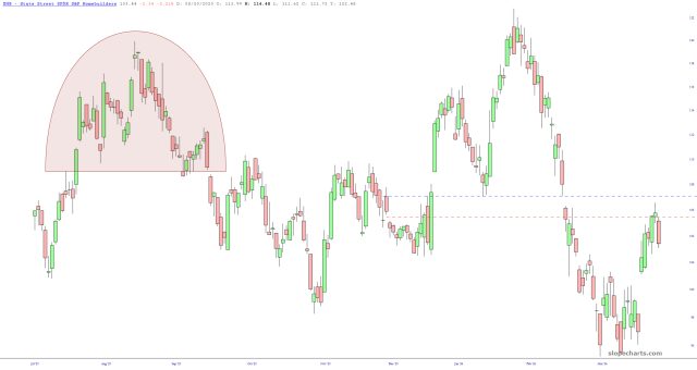 …..I am eternally grateful that my short picks are, in some important cases, bucking the trend. Besides my IBIT short (which is doing all right), the only other ETFs in which I have positions are those shown below, both of which are, bless ’em, managing to show red quotes for the day. Hang in there, boys!
