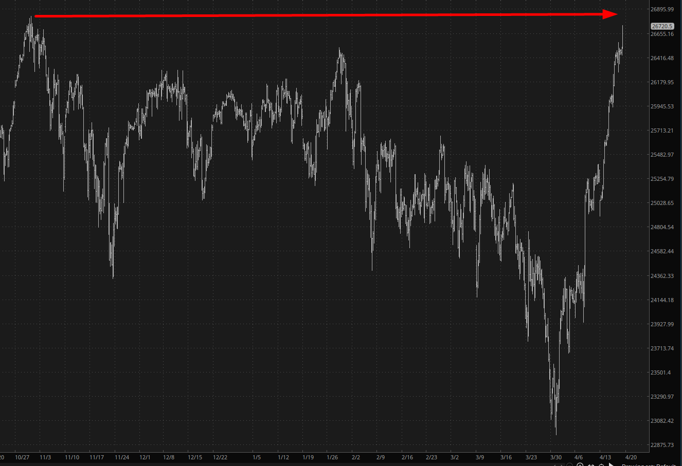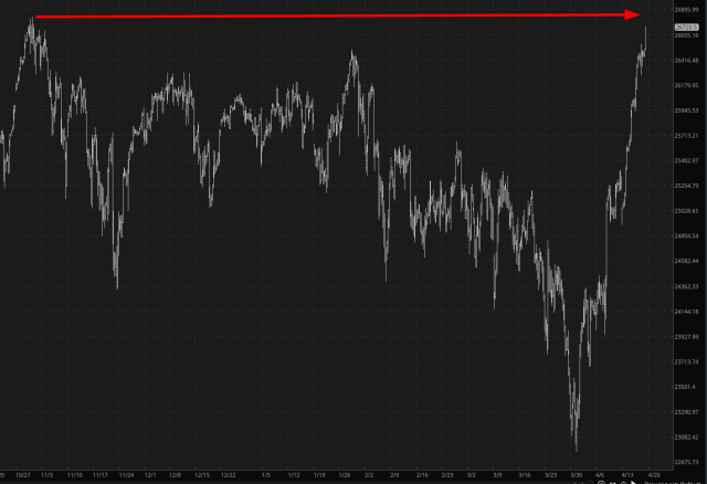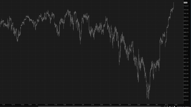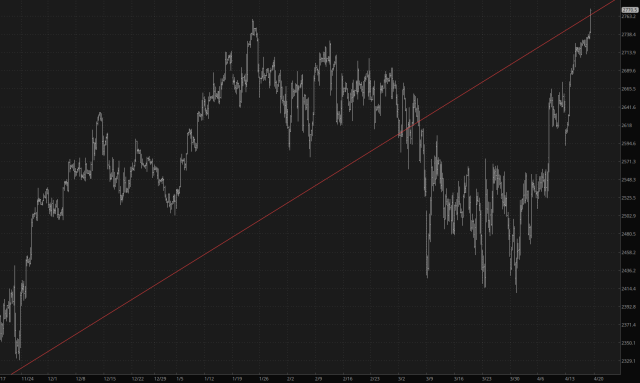 Greetings from the mountains of North Lake Tahoe. When I began this post, the markets were strong across the board, but with the news that the Strait of Hormuz would completely open and Iran is apparently willing to hand over its nuclear stockpile once their assets are released, the markets are going absolutely ape.
