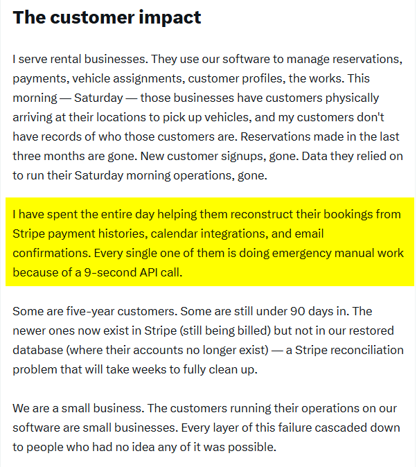 Back on April 14th, Slope had a human-generated error whose net result was that some folks got emails saying their account was cancelled, when in fact nothing of the sort had happened. Having hurled the aforementioned human off the Golden Gate Bridge, I have been having techno-PTSD ever since, but at least our problem had ZERO true impact and was due to human error.