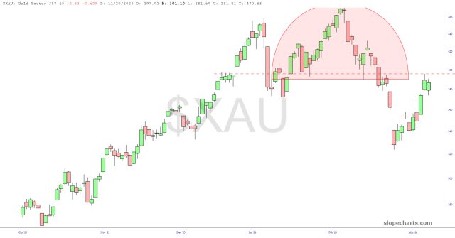 Lastly, gold has undone about half of its damage over the past couple of weeks, but I’d say the recovery looks to be over. That price peak on Thursday should be viewed as an important reversal level.