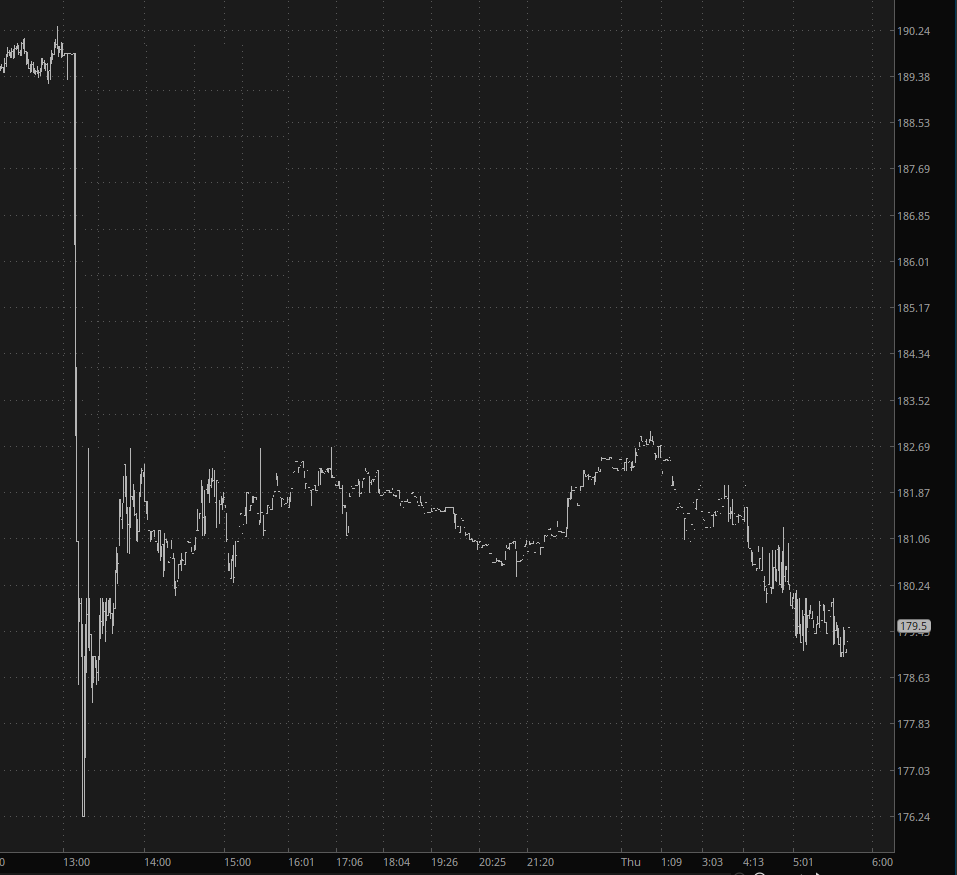 Yesterday evening, the market had a micro-crash based on rumors that Iran was getting bombed (of all places!) Those rumors were quickly dismissed, and the market had a shaky recovery all night long.
