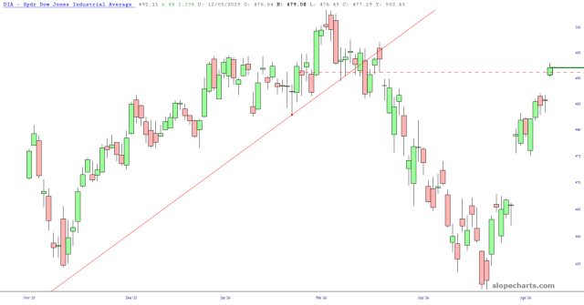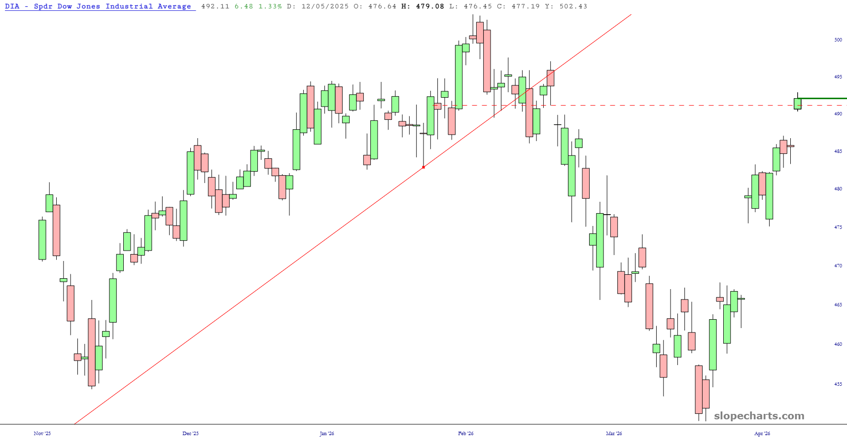A moment of silence, please, for the last, lonely gap: that of the Dow Industrials fund DIA.